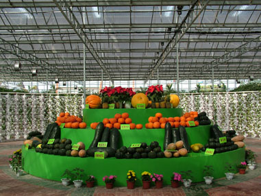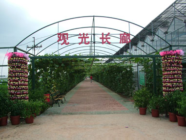 示范園按照一縱、二橫和一環(huán)路的基本框架進(jìn)行建設(shè),主要由智能農(nóng)業(yè)展示區(qū)、現(xiàn)代農(nóng)業(yè)觀光區(qū)區(qū)、新產(chǎn)品試驗(yàn)區(qū)、休閑農(nóng)業(yè)活動區(qū)等部分組成;現(xiàn)已建成智能溫棚2491.2平方米,現(xiàn)代溫室大棚8064平方米,普通溫室大棚51000平方米,共計(jì)61555.2平方米;園內(nèi)展示有美國、英國等10余個(gè)國家、200余個(gè)單位各類新、特、優(yōu)、奇等品種2000余個(gè),面積5000余平方米;科研、辦公面積8000平方米,各類工作人員50余人,客座院士、專家、教授10余人;建設(shè)有1500米的觀光長廊、80000平方米的垂釣場所及12000平方米的停車場等各類休閑設(shè)施設(shè)備。