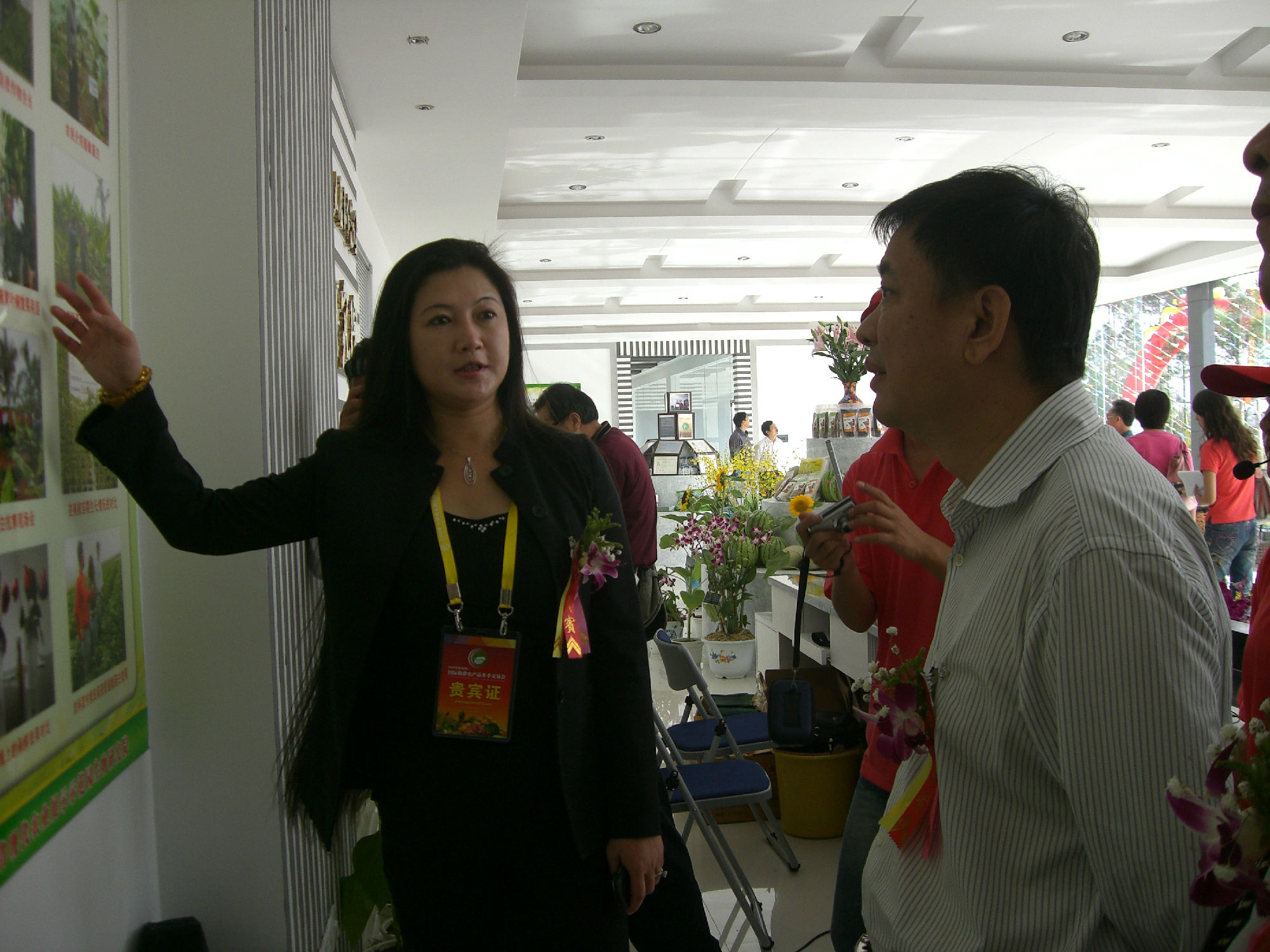 公司董事長梁念宜為海南省政協(xié)副主席史貽云介紹農大哥產品使用效果